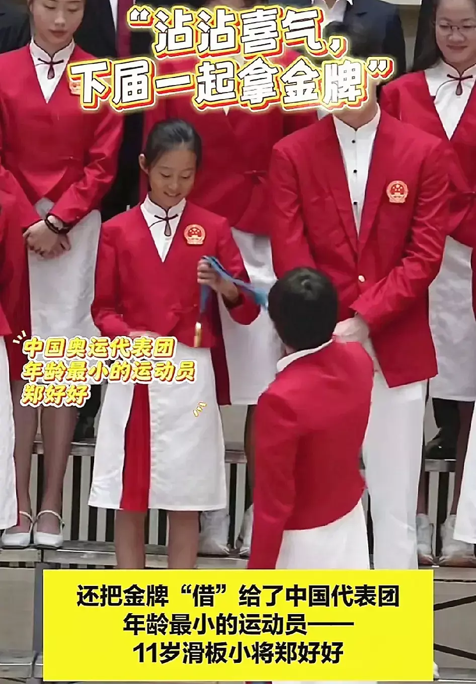 复返广州后,全红婵亦然受到了广东省体育局携带和使命主说念主员的照应宽饶,成功在机场拉出横幅:“浓烈宽饶第33届奥运会广东体育健儿凯旋!”随后当地垄断部门还作出决定,对获奖绽放员以及郑重员赐与奖励,全红婵等25东说念主被记大功,不错说全红婵赢得了各方的赞誉。另外皮广东省纪念奖赏大会上,全红婵还把我方的一枚金牌“借给了”中国代表团年事最小绽放员11岁滑板小将郑好好,而郑好好接过金牌后还对全红婵说了句谢谢,眼里充满了改变,以及关于金牌的渴慕,全红婵的这个举动无疑是在郑好好的心中埋下了一颗种子,大概4年后的洛杉矶奥运会,郑好好就能够跟全红婵相似带回金牌,不少网友看到后,亦然夸赞全红婵的情商相等高。